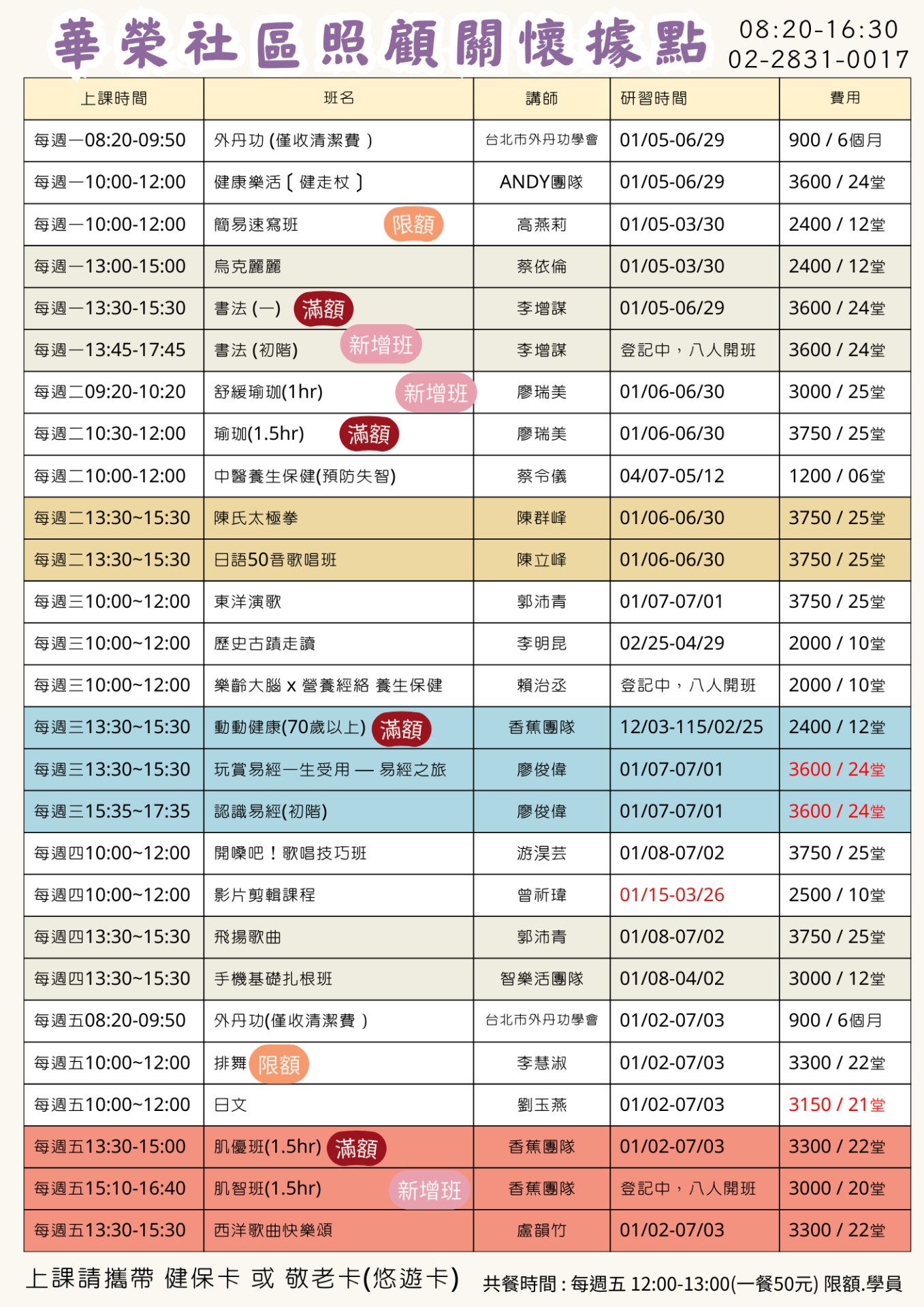 #「115年上半年全新課程表」#
